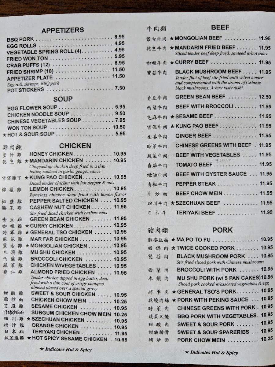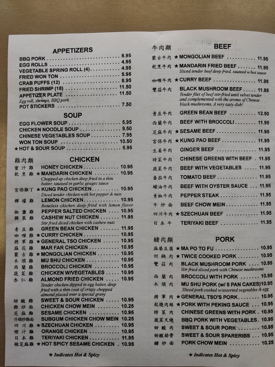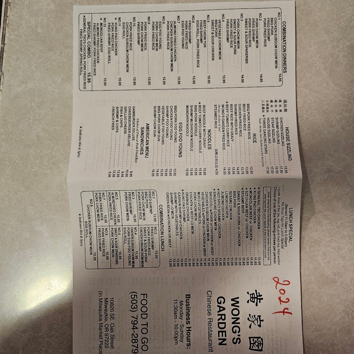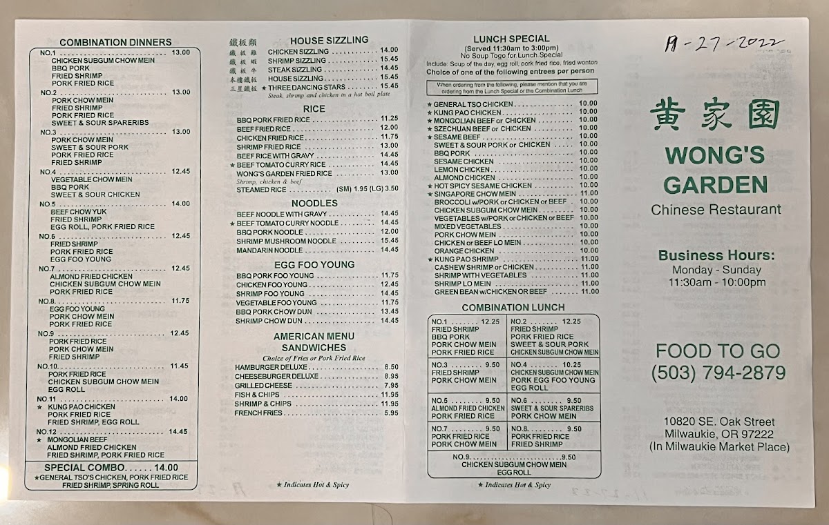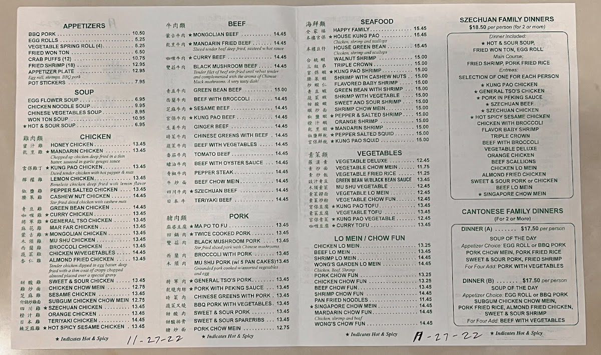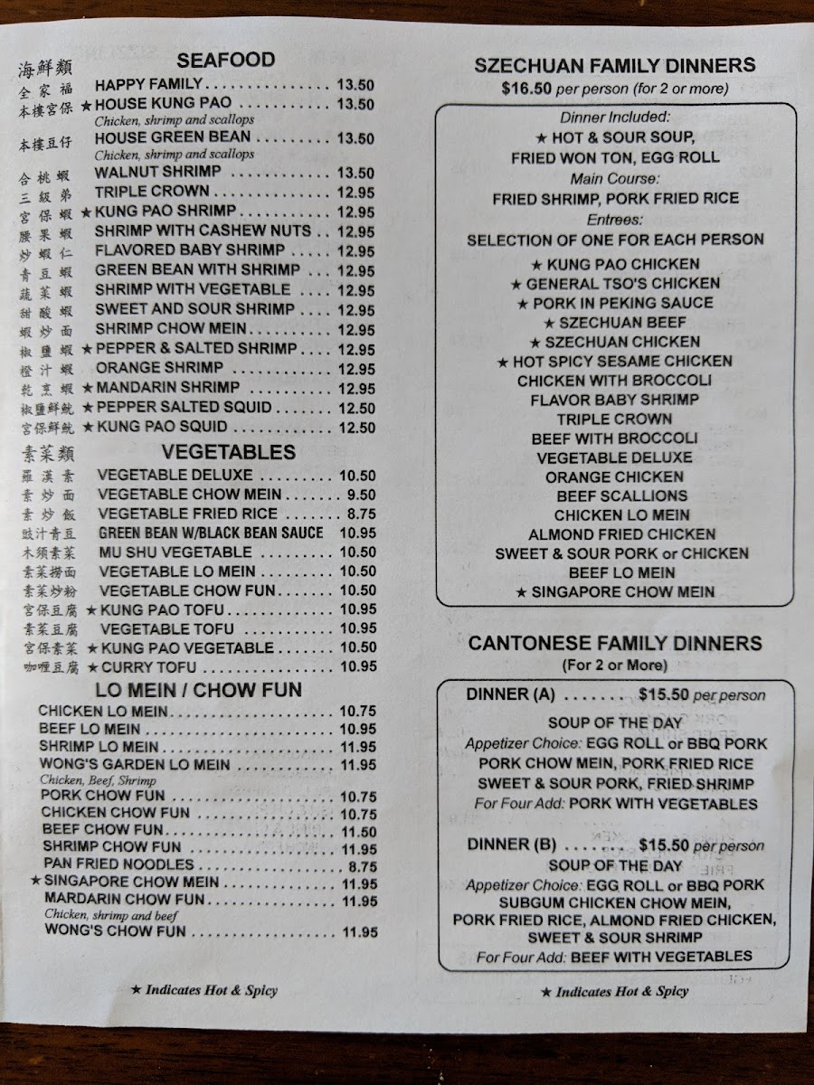 Wong's Garden Menu